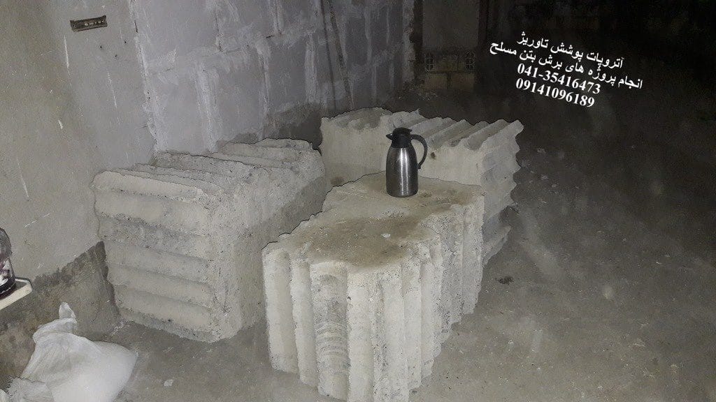 - به منظور جلوگیری از آسیب دیدن سقف حین سقوط قطعات بتنی برش خورده, از مصالح منعطف و موجود در محل مثل لاستیک های خودروی مستهلک و بلوک پلی استایرن در محل سقوط استفاده شده است. لازم به توضیح است این لوازم عملیات حمل قطعات بتنی برش خورده را نیز پس از سقوط ساده تر خواهند نمود.