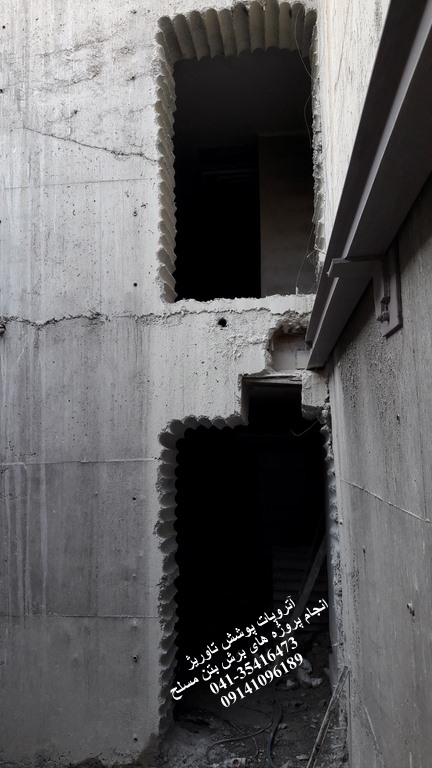برش دو فقره اوپنینگ مستطیل شکل در دیوار بتن مسلح به ضخامت ۵۵ سانتیمتر جهت نصب درب و ارتباط دو فضای مجاور