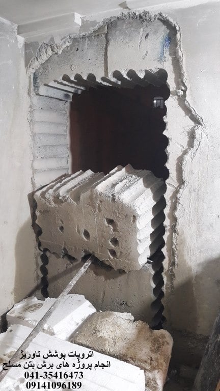 قطعات بتنی برش خورده و خارج شده از محل اوپنینگ